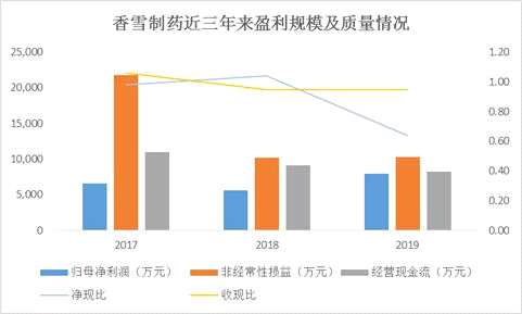 5月20日,香雪制藥(300147)發(fā)布2019年年度報告,報告期內(nèi),公司公司營收、歸母凈利潤分別同比增長11.26%、41.70%至27.86億元、0.80億元,而扣非凈利潤虧損0.23億元。近三年來,公司扣非凈利潤均為虧損狀態(tài),且經(jīng)營性現(xiàn)金流逐年減少。