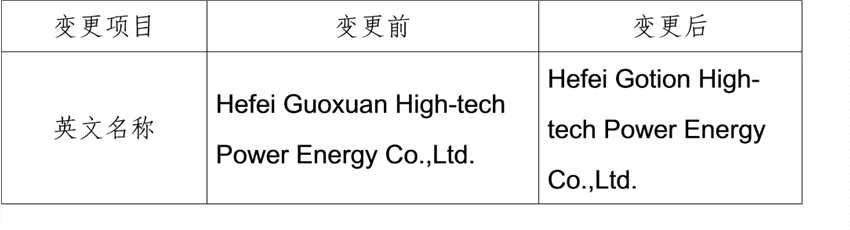 公司旗下的子公司、孫公司相關英文名稱同步參照上表作出相應變更,如公司旗下全資子公司“合肥國軒高科動力能源有限公司”英文名稱變更如下: