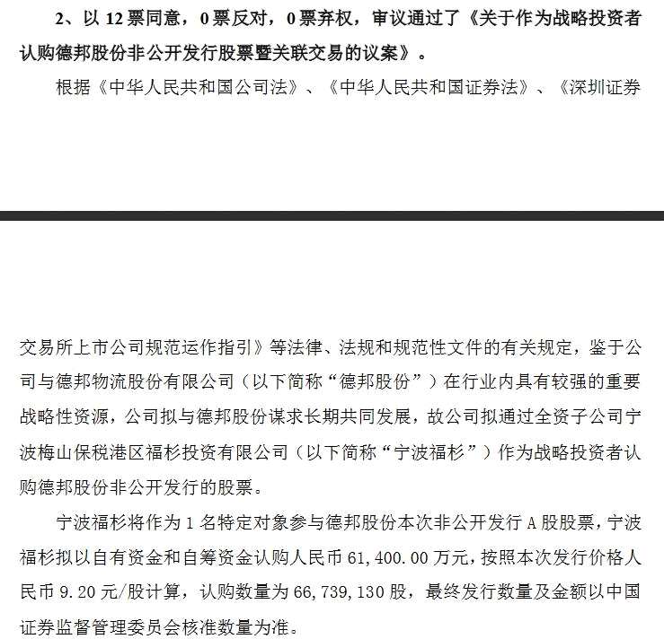 ?。?img style="margin-bottom:-4px" src="http://image.yjcf360.com/202005/bdef14a1011744ebad4ec56ebdacb740.png"> 文/張珩)5月25日,韻達(dá)股份(002120)(SZ.002020)發(fā)布公告稱,鑒于公司與德邦物流在業(yè)內(nèi)有較強(qiáng)的互補(bǔ)性。韻達(dá)股份擬通過全資子公司寧波福杉認(rèn)購德邦66739130股非公開發(fā)行股票,耗資6.14億元。