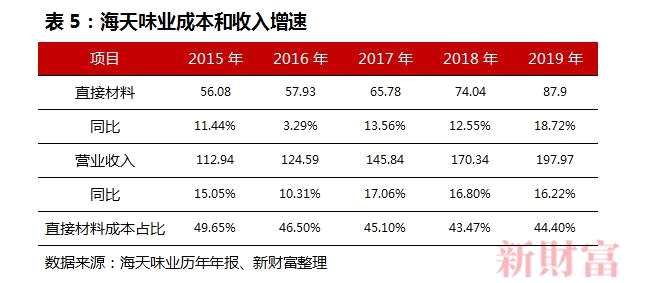 不過,2019年海天的直接材料成本增速首次超過營收增速,公司解釋為采購成本上升,蠔油銷售量同比增長較快,蠔油產(chǎn)品各項成本較高所致。