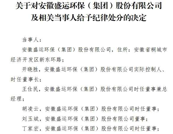 違規(guī)擔(dān)保、實控人占用公司資金、信披不及時等“五宗罪” 盛運環(huán)保及相關(guān)當(dāng)事人被紀(jì)律處分
