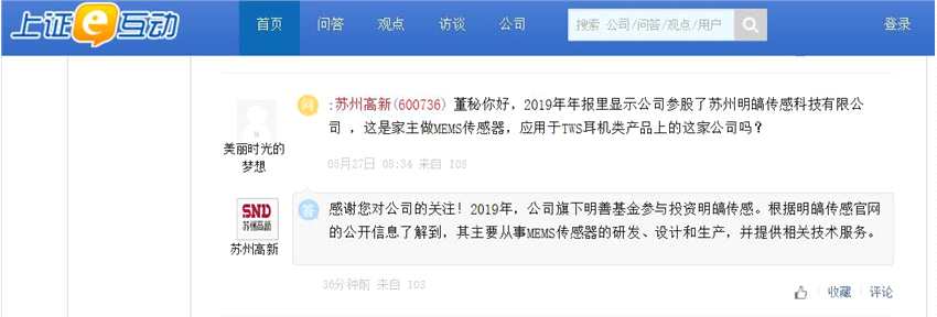 蘇州高新:公司旗下融聯(lián)基金參與投資的公司有業(yè)務(wù)涵蓋電動車充電樁