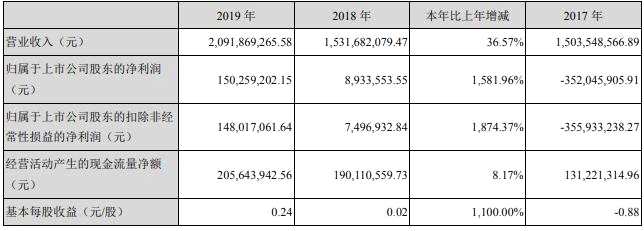 1、報告期內(nèi),你公司實現(xiàn)營業(yè)收入20.92億元,同比增長36.57%,實現(xiàn)歸屬于上市公司股東的凈利潤(以下簡稱“凈利潤”)為1.5億元,同比增長1,581.96%,經(jīng)營活動產(chǎn)生的現(xiàn)金流量凈額為2.06億元,同比增長8.17%。請你公司: