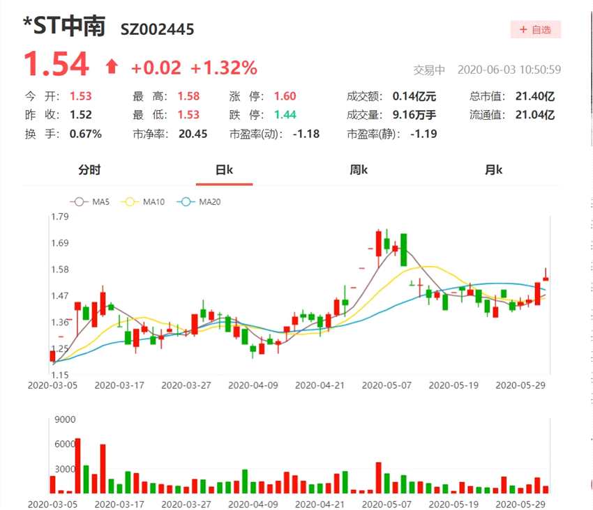 不得不說,這背后是控股股東危機。公司股價也充分反映了這一事實。自2015年5月以來,*ST中南的股價一路呈下行趨勢。截至6月2日的收盤價為1.52元/股,僅為2015年5月的最高股價60.40元/股(不復權(quán))的2%左右。