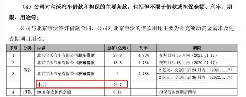 北汽集團持有福田汽車(600166)27.46%股份,是后者第一大股東;截止4月,寶沃欠福田借款本金46.7億元(2023年1月17日前需還清)。
