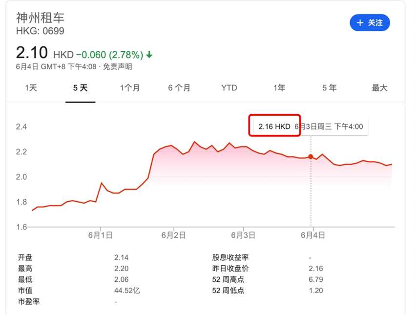 而北汽收購的定價機制為“綜合考慮市場價及公司公允價值”,6月4日神州租車的收盤價為2.10港幣,如果能以市價收購,北汽才是真正“抄底”神州租車的“贏家”。