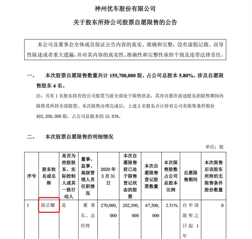 除了賣掉神州租車籌錢,神州優(yōu)車還展開了一系列自救行動:4月21日,神州優(yōu)車向優(yōu)車產(chǎn)業(yè)基金轉(zhuǎn)讓對價2.5億元的目標(biāo)公司股權(quán);陸正耀高管多次自愿限售所持股票,來穩(wěn)定投資者信心。
