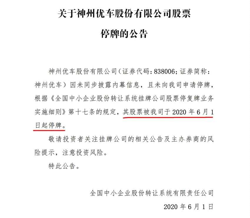 6月1日,神州租車母公司神州優(yōu)車因未同步披露內(nèi)幕信息被一度停牌