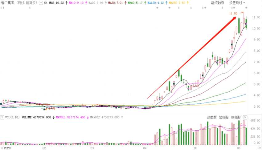 4月8日至6月4日,省廣集團股價從不足3元漲至最高11.5元,股價累計漲超270%,比供銷大集有過之而無不及。