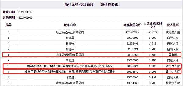 據(jù)互聯(lián)網(wǎng)記者查詢發(fā)現(xiàn),截至4月7日,中信證券股份有限公司持有浙江永強(qiáng)2800.05萬(wàn)股,占流通股比例1.488%,是浙江永強(qiáng)第五大流通股股東。該公司最早出現(xiàn)在浙江永強(qiáng)前十大流通股東是在2019年四季度,當(dāng)時(shí)持有2606.61萬(wàn)股,占流通股比例1.388%,此后陸續(xù)加倉(cāng)。