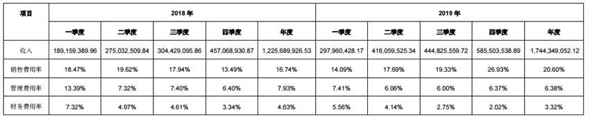 近兩年各個(gè)季度期間費(fèi)用率列示如下: