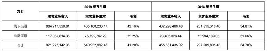 2019 年公司廣告促銷費(fèi)、職工薪酬、裝卸運(yùn)輸費(fèi)較 2018 年同比增長(zhǎng) 91.67% 、23.02% 及 153.69%,但三項(xiàng)費(fèi)用占 2019 年?duì)I業(yè)收入比例分別為 11.53%、4.12% 及 3.48%,較 2018 年?duì)I業(yè)收入占比 8.56% 、4.76% 及 1.95%,變動(dòng)幅度不大。