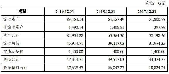2016年末、2017年末、2018年末、2019年末,三人行總資產分別為3.03億元、5.22億元、6.56億元、8.50億元,負債總額分別為1.63億元、3.34億元、3.95億元、4.73億元。