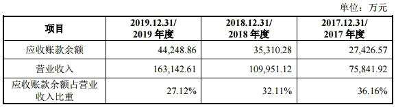 2016年末、2017年末、2018年末、2019年末,三人行應收賬款余額分別為1.76億元、2.74億元、3.53億元和4.42億元。2018年末和2019年末,公司應收賬款余額分別同比增長28.74%和25.31%,應收賬款余額較高且增速較快。