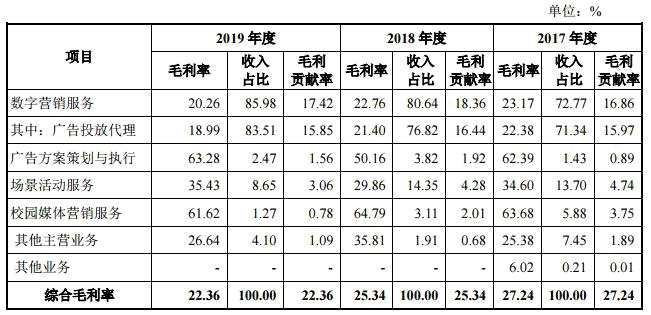 三人行綜合毛利率連降3年。2016年至2019年,三人行綜合毛利率分別為38.99%、27.24%、25.34%和22.36%。