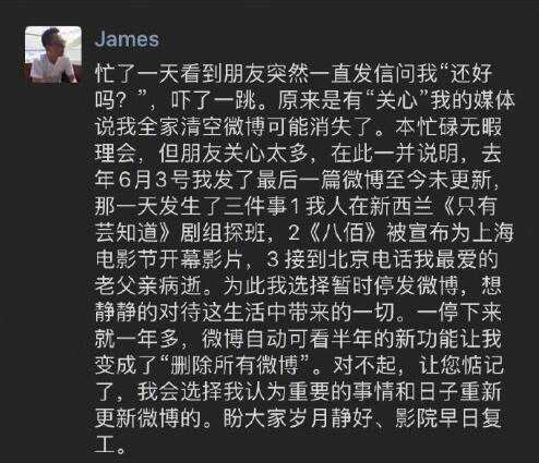 王中磊回應(yīng)清空社交平臺(tái):只是暫時(shí)停更 盼影院早日復(fù)工