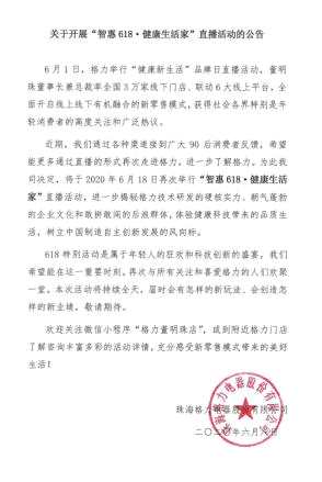 繼本月1日的“格力品牌日”直播創(chuàng)下了65.4億元的銷售紀(jì)錄之后,格力電器(000651)6月12日宣布將在6月18日當(dāng)天由格力電器董事長兼總裁董明珠繼續(xù)攜手經(jīng)銷商在格力董明珠店等平臺再次開展“智惠618·健康生活家”直播活動。