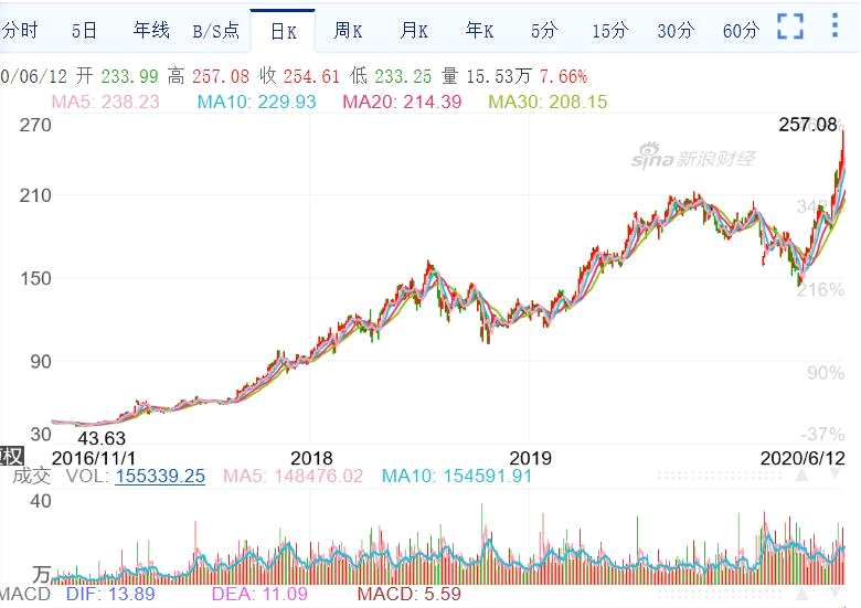 同花順(300033)數(shù)據(jù)顯示,中國國旅后復權(quán)模式下自2017年以來,公司累計漲幅已經(jīng)接近500%。