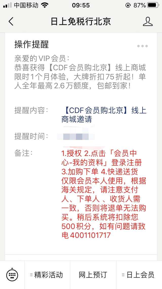 一位吳姓女士向記者介紹,其在4月份收到了日上免稅行的VIP會員邀請,可以通過線上的方式購買免稅品。