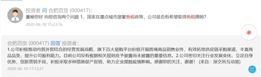 在投資者互動平臺上,上市公司是否會涉及免稅業(yè)務(wù)成為熱詞。