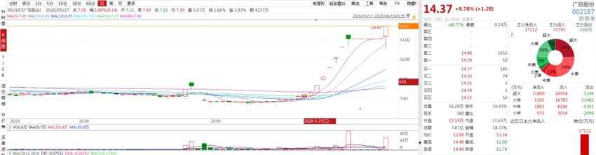 5月29日,廣百股份突然強(qiáng)勢(shì)漲停,此后五個(gè)交易日,公司股價(jià)更是持續(xù)走強(qiáng),后面直接走起了一字板。