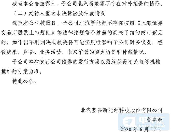 6月18日,北汽藍(lán)谷(600733)發(fā)布公告稱,北京新能源汽車股份有限公司擬公開發(fā)行不超過30億元(含30億元)的公司債券。募集資金扣除發(fā)行費(fèi)用后,擬用于償還有息債務(wù)、補(bǔ)充營運(yùn)資金及適用的法律法規(guī)及規(guī)范性文件允許的其他用途。
