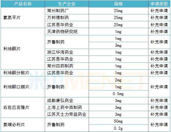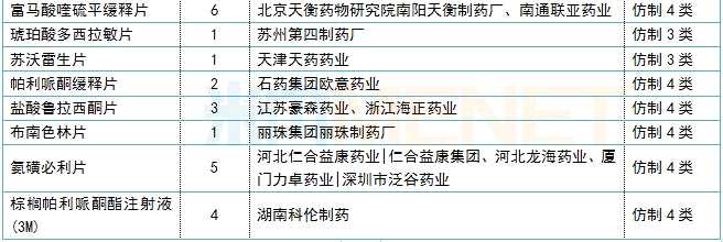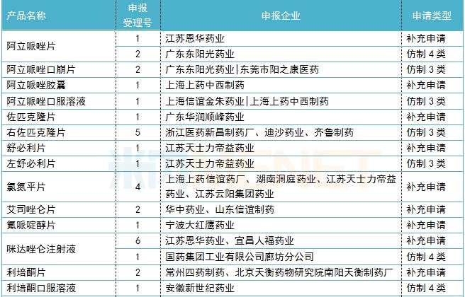 正在審評(píng)的精神安定藥一致性評(píng)價(jià)及仿制上市申報(bào)情況