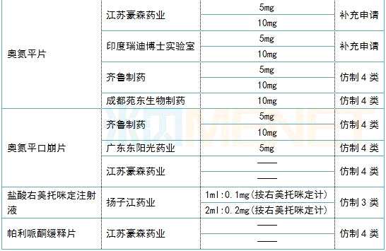 數(shù)據(jù)顯示,2019年中國公立醫(yī)療機(jī)構(gòu)終端奧氮平銷售額超過40億元,江蘇豪森藥業(yè)的市場(chǎng)份額位居首位,達(dá)63.9%。在此之前奧氮平口崩片只有禮來和齊魯制藥兩家,今年以來,河北龍海藥業(yè)、廣東東陽光藥業(yè)、江蘇豪森藥業(yè)先后獲批。
