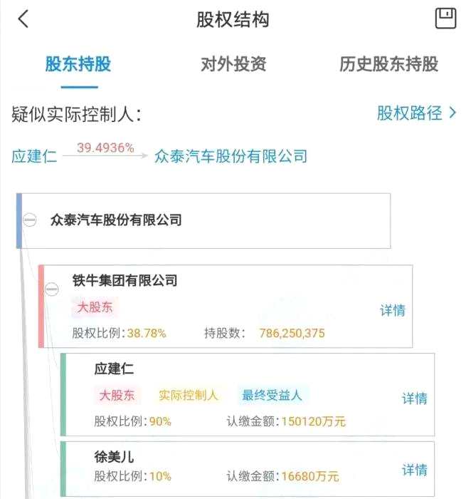 眾泰汽車由應(yīng)建仁、徐美兒夫婦控制。數(shù)據(jù)來(lái)源:企查查