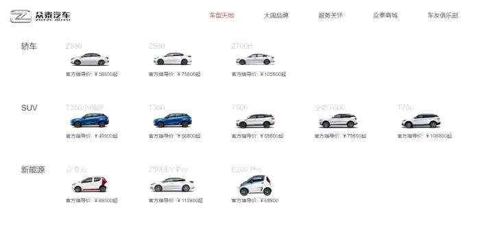 新車型仍無(wú)消息。圖片來(lái)自眾泰汽車官網(wǎng)