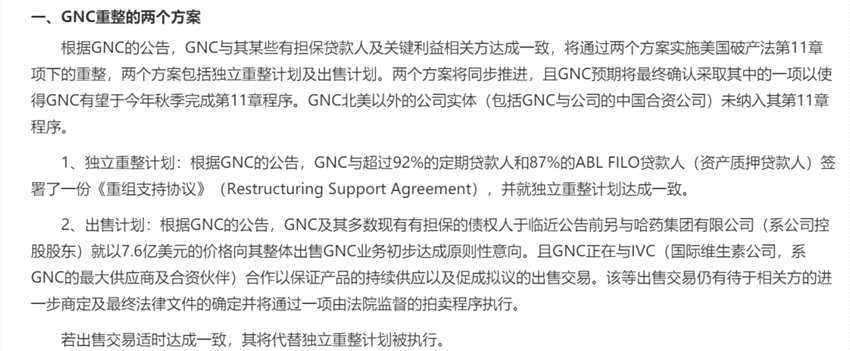 GNC破產(chǎn)重整的2個方案