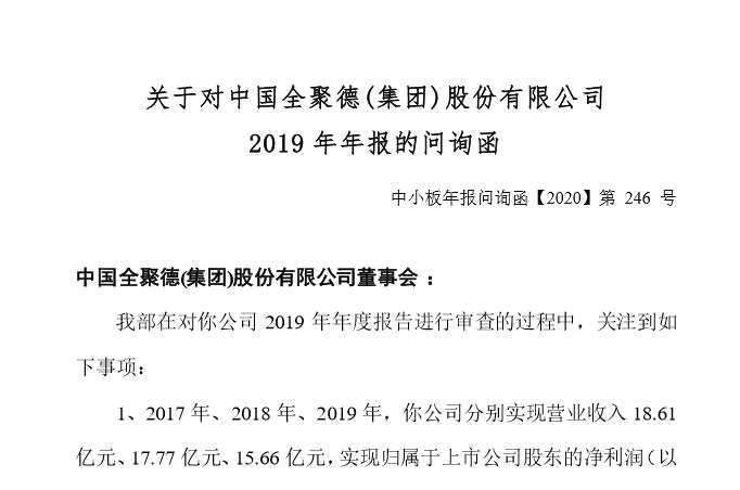 6月29日,全聚德(002186)收到深交所出具的關(guān)注函,要求其針對2019年年報(bào)審查過程中部分事項(xiàng)進(jìn)行說明。