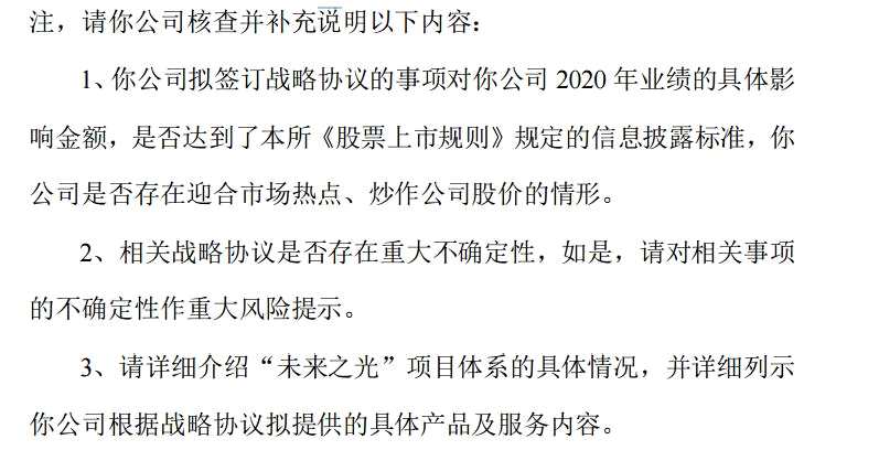 期間,公司連續(xù)披露了《關(guān)于擬簽訂戰(zhàn)略合作協(xié)議的公告》、《關(guān)于公司部分債務(wù)獲得豁免并簽署相關(guān)協(xié)議的公告》以及《關(guān)于董事長(zhǎng)增持公司股份計(jì)劃的公告》等消息。鑒于此,深交所希望公司就上述事項(xiàng)對(duì)公司業(yè)績(jī)的實(shí)際影響,以及是否達(dá)到信息披露標(biāo)準(zhǔn)作出說(shuō)明。