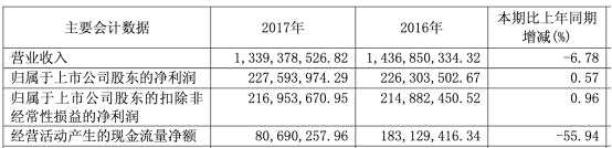 上市首年,常熟汽飾營(yíng)收、主營(yíng)業(yè)務(wù)毛利率下滑。2017年年報(bào)顯示,公司實(shí)現(xiàn)營(yíng)業(yè)收入13.39億元,較上年同期減少6.78%;實(shí)現(xiàn)歸屬于上市公司股東的凈利潤(rùn)2.28億元,較上年同期增長(zhǎng)0.57%;實(shí)現(xiàn)歸屬于上市公司股東的扣除非經(jīng)常性損益的凈利潤(rùn)2.17億元,較上年同期增長(zhǎng)0.96%;經(jīng)營(yíng)活動(dòng)產(chǎn)生的現(xiàn)金流量?jī)纛~為8069.03萬(wàn)元,較上年同期減少55.94%;公司主營(yíng)業(yè)務(wù)汽車(chē)零部件及配件制造業(yè)毛利率為19.73%,較上年同期減少3.08個(gè)百分點(diǎn)。