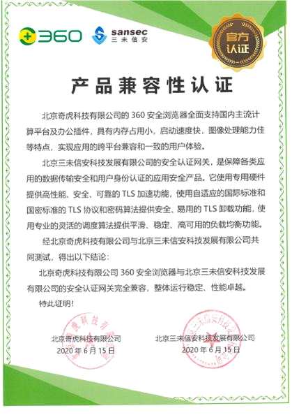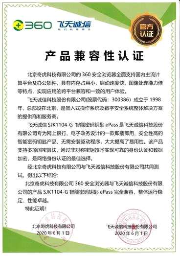 近日,360集團與飛天誠信(300386)、三未信安共同宣布,360安全瀏覽器已與飛天誠信SJK1104-G智能密碼鑰匙ePass、三未信安智能密碼鑰匙和安全認證網(wǎng)關(guān)順利完成產(chǎn)品兼容性認證,整體運行穩(wěn)定,性能卓越。至此,360安全瀏覽器通過產(chǎn)品兼容認證,將進一步滿足政企多端用戶對瀏覽器產(chǎn)品便捷、安全與可信的強訴求,增進國產(chǎn)瀏覽器在密碼算法支持上的完美適配。