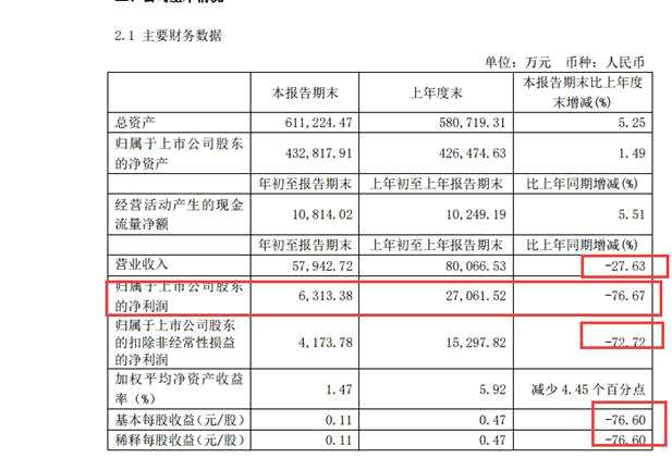 報(bào)告顯示,報(bào)告期內(nèi),九牧王實(shí)現(xiàn)營(yíng)業(yè)收入為5.79億元,與上一年同期相比下降27.63%;實(shí)現(xiàn)歸屬于上市公司股東的凈利潤(rùn)為0.63億元,與上一年同期相比下降76.67%。歸屬于上市公司股東的扣除非經(jīng)常性損益的凈利潤(rùn)為0.42億元,與上年同期相比下降72.72%。