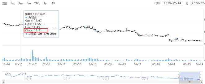 據(jù)巨潮資訊網(wǎng),2020年1月2日當(dāng)天,九牧王收盤(pán)價(jià)為11.51元/股;2020年6月30日當(dāng)天,九牧王收盤(pán)價(jià)為8.80元/股。以收盤(pán)價(jià)算,九牧王最近半年來(lái)股價(jià)下跌了23.54%。