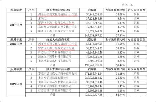 根據(jù)報(bào)表,鼎龍文化2017年前五大供應(yīng)商中有四個(gè)為影視業(yè)務(wù)供應(yīng)商(合計(jì)采購(gòu)額占比28.37%),一個(gè)為游戲業(yè)務(wù)供應(yīng)商(采購(gòu)額占比為9.54%);2018年前五大供應(yīng)商中有兩個(gè)為影視業(yè)務(wù)供應(yīng)商(合計(jì)采購(gòu)額占比為21.97%),三個(gè)為游戲業(yè)務(wù)供應(yīng)商(合計(jì)采購(gòu)額占比為16.45%)。