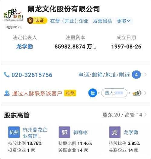 據(jù)了解,鼎龍文化是鼎龍集團(tuán)旗下唯一的A股上市公司,成立于1997年,法定代表人為龍學(xué)勤。集團(tuán)公司則注冊(cè)于2005年,總部位于廣州,是一家涉足地產(chǎn)開發(fā)、酒店投管、物業(yè)管理、新零售、港口及航空、現(xiàn)代農(nóng)業(yè)、健康、影視文化等多個(gè)產(chǎn)業(yè)領(lǐng)域的綜合性企業(yè)。