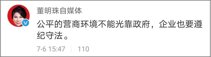 董明珠轉(zhuǎn)發(fā)了該舉報材料并評論稱:“公平的營商環(huán)境不能光靠政府,企業(yè)也要遵紀守法。”