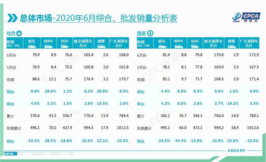 根據(jù)乘聯(lián)會公布的數(shù)據(jù)顯示,今年上半年,全國乘用車總銷量為770萬輛,同比下滑22.5%。其中,6月乘用車市場零售達到165.4萬輛,同比下降6.2%,但與2020年5月相比實現(xiàn)了2.9%的環(huán)比增長??梢钥闯鰢鴥?nèi)乘用車市場汽車汽車市場正在逐步回暖。