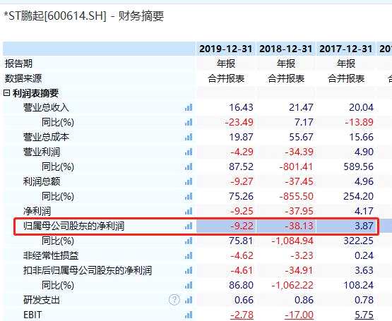 2020年6月22日,公司發(fā)布了2019年年報,年報顯示公司2019年實現(xiàn)營業(yè)收入16.43億元,同比下降23.49%;凈利潤虧損9.22億元。對于*ST鵬起的2019年年報,審計機構(gòu)中興財光華會計師事務(wù)所出具了無法表示意見的審計報告。
