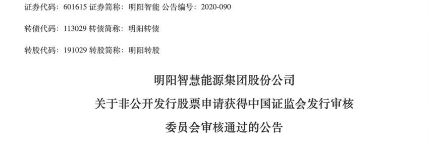 明陽智能(601615):關于非公開發(fā)行股票申請獲得中國證監(jiān)會發(fā)行審核委員會審核通過的公告
