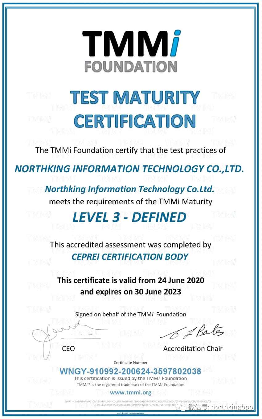 TMMi是當(dāng)前國(guó)際上最權(quán)威的針對(duì)測(cè)試組織成熟度的評(píng)估模型,京北方成功通過(guò)TMMi3級(jí)認(rèn)證,標(biāo)志著公司在專業(yè)技術(shù)領(lǐng)域的能力得到進(jìn)一步提升。