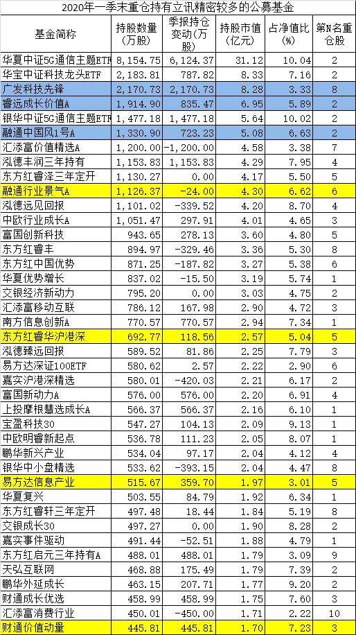 公募基金重倉股,陳光明旗下基金一季度大幅加倉