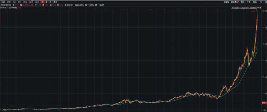自2010年上市以來,立訊精密股價已經(jīng)上漲了超50倍。