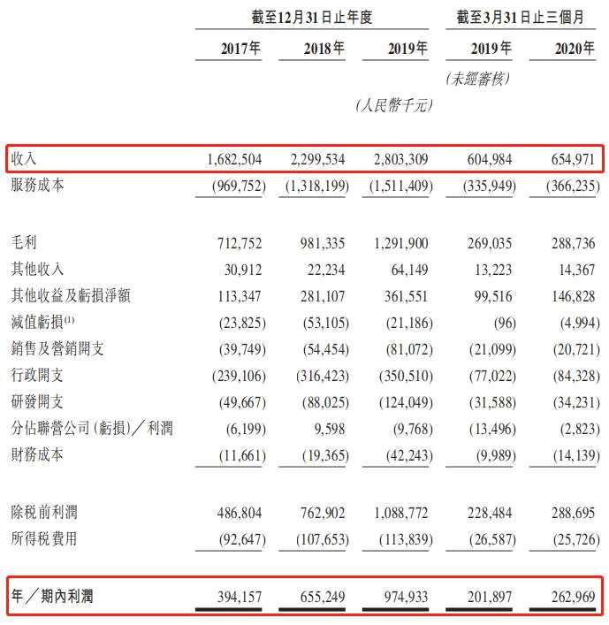 泰格醫(yī)藥的總收入由2017年的16.83億元人民幣增至2018年的23.00億元人民幣,并進一步增至2019年的28.03億元人民幣,復合年增長率為29.1%;凈利潤由2017年的3.94億元人民幣增至2018年的6.55億元人民幣,并進一步增至2019年的9.75億元人民幣,復合年增長率為57.3%。