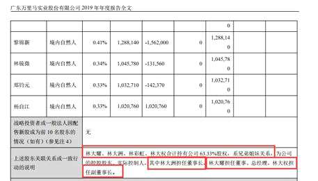 根據(jù)萬(wàn)里馬2019年度報(bào)告,林大洲為萬(wàn)里馬現(xiàn)任董事長(zhǎng),任期從2014 年 08 月 28 日開(kāi)始,于2020 年 09 月 18 日終止任期。另外,林大權(quán)為萬(wàn)里馬現(xiàn)任副董事長(zhǎng),任期從2014 年 08 月 28 日開(kāi)始,于2020 年 09 月 18 日終止任期。值得注意的是,萬(wàn)里馬董事長(zhǎng)林大洲、副董事長(zhǎng)林大權(quán)為兄弟關(guān)系。