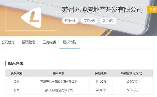 蘇州兆坤房地產(chǎn)開(kāi)發(fā)有限公司股權(quán)結(jié)構(gòu)圖。來(lái)源:獵聘網(wǎng)