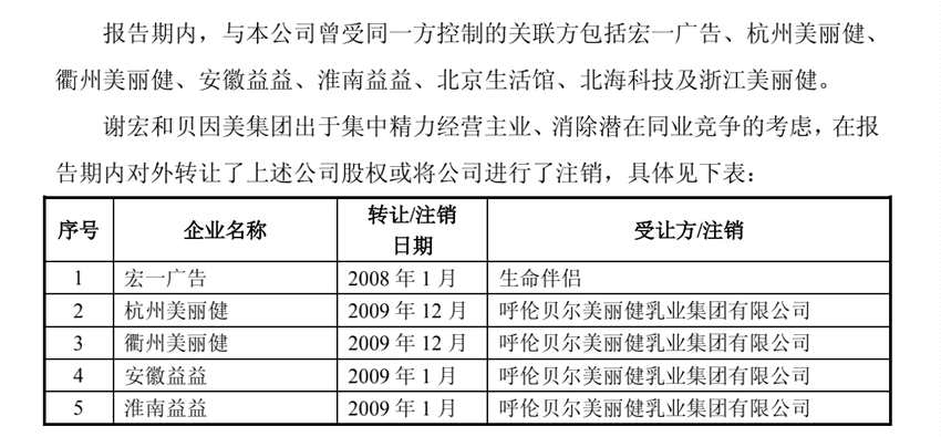 巧合的是,貝因美收購吉林貝因美65%股權(quán),并非貝因美與美麗健乳業(yè)第一次產(chǎn)生交易,2009年時,雙方就曾產(chǎn)生關(guān)聯(lián)。貝因美招股書顯示,謝宏和貝因美集團(tuán)為消除潛在同業(yè)競爭的考慮,將安徽益益及其子公司淮南益益轉(zhuǎn)讓給呼倫貝爾美麗健乳業(yè)集團(tuán)有限公司,即美麗健乳業(yè)。